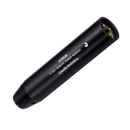 配有一個 AT8538 供電模組,需要提供11V至52V幻象供電,可使用調音臺上的幻象電源,也可以使用鐵三角的 AT8801 單通道或 AT8506 四通道幻象電源供電器作獨立供電。